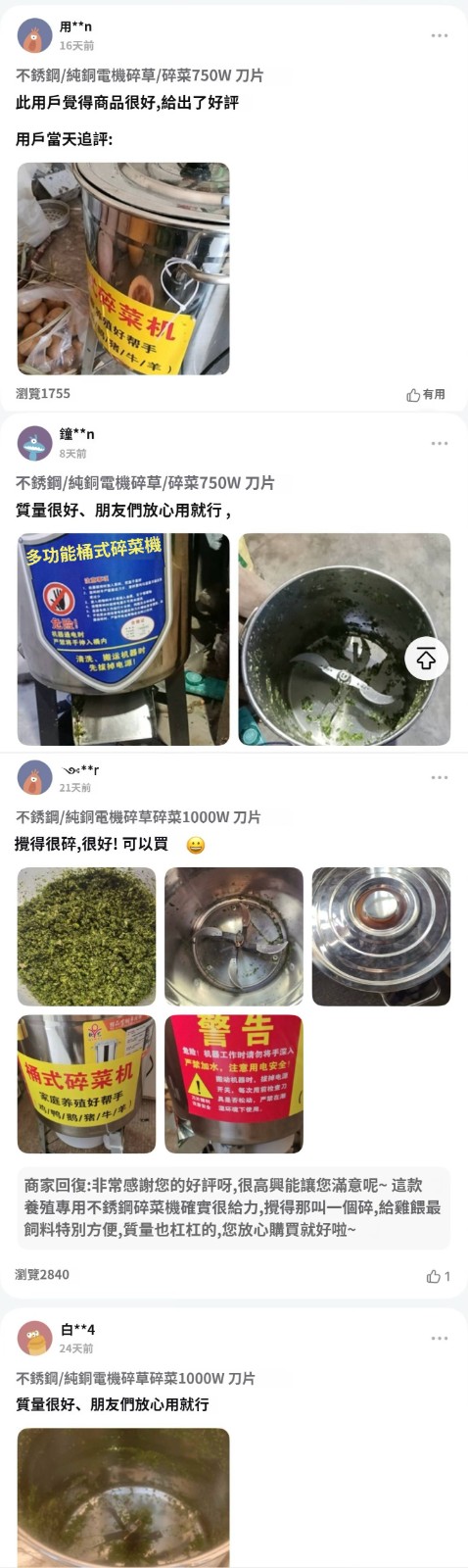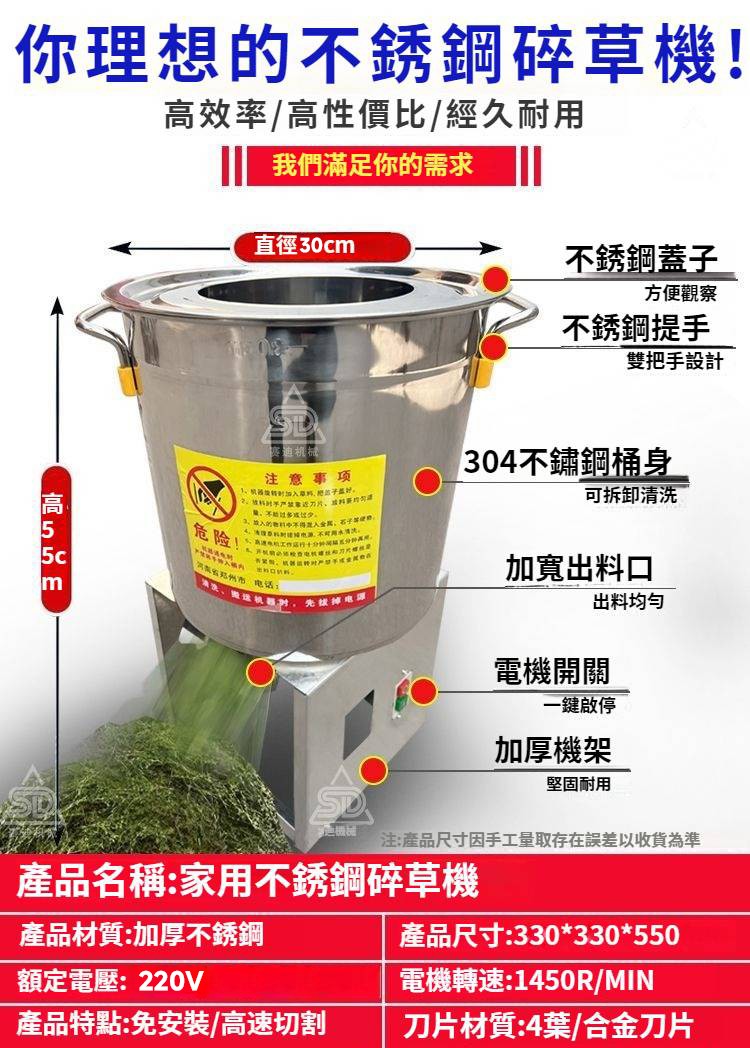 2分鐘前【養殖好幫手】多功能碎菜機,碎菜只需1秒,廠家直銷,貨到付款 量大優惠! - 800W不鏽鋼台式碎菜機--NT$3590